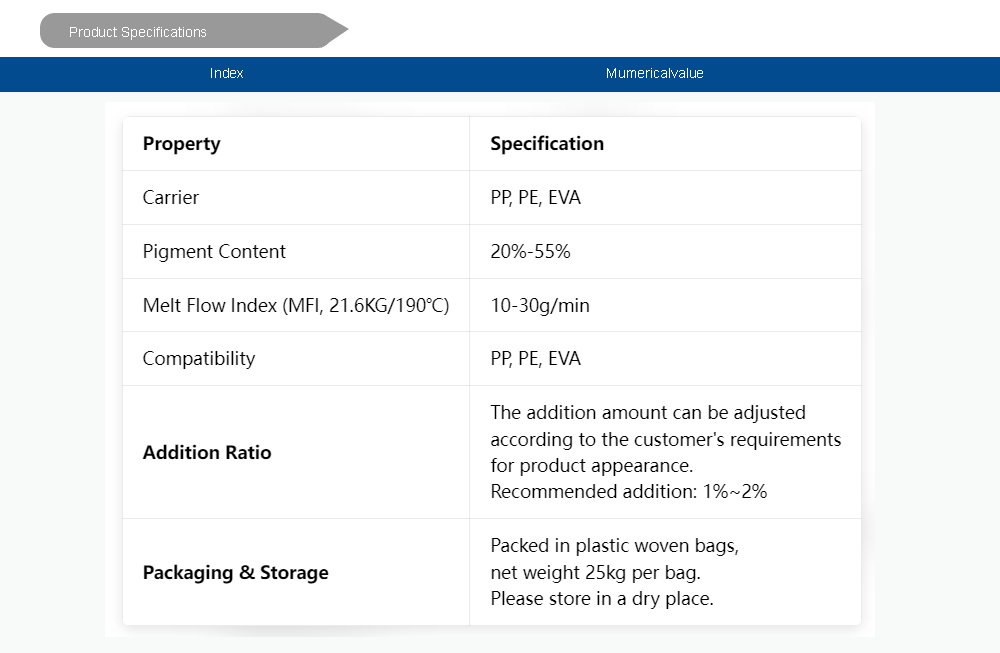 This color masterbatch is widely used for communication cables, data cables, automotive wires, and power cables. It offers excellent compatibility with various substrates, including PVC, EVA, and low-smoke halogen-free materials.