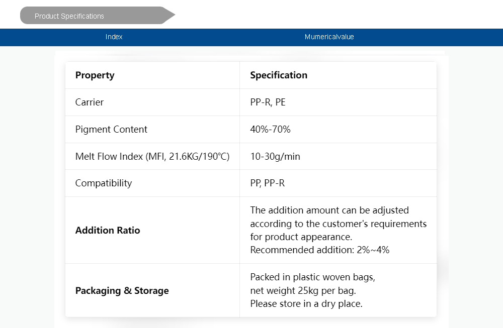 Featuring excellent dispersion, it effectively prevents color streaks and spots while enhancing material toughness. The product helps improve production efficiency and creates a cleaner working environment.