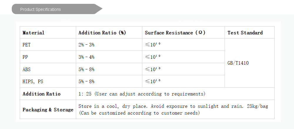 Antistatic Masterbatch effectively reduces the surface resistivity of polyolefin-based plastics, minimizing dust attraction and material sticking caused by static electricity.
